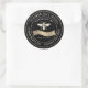 Black Label with Vintage French Bee features a double white border circling your Apiary Name and Location. Apiary name is displayed in curved text across the top and the beekeeper's city and town are written in curved text underneath apiary name. There is a delicate white and taupe border near the outer perimeter of the label. The words “PURE RAW HONEY" are written on a wavy gold gradient banner in centre of label (and may be deleted & substituted for the word “HONEY" by “unhiding” the eyeball icon on the left of the word HONEY on line 1 in DESIGN PANEL)