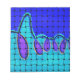 Outlined in black, this shape is filled with a gradient of purples and pinks, offering a vibrant contrast to the structured background. Its organic and flowing form enhances the dynamic feel of the piece.