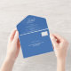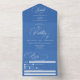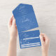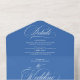 Elevate your wedding stationery with this elegant French blue all-in-one wedding invitation. Featuring a sophisticated script, this design combines your wedding details, RSVP, and additional information in one seamless piece. The boho rich, French blue green colour adds a warm, inviting touch, perfect for any season. Customizable text ensures your unique details are beautifully presented, creating a cohesive and stylish invitation suite for your special day.