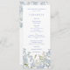 This soft watercolor florals wedding program card features delicate french blue flowers, perfect for a romantic, vintage, or garden-themed wedding. It offers a personalized, elegant touch to your celebration. Customizable text and colours make it a timeless, artistic choice for your special day.