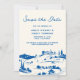 French blue save the date card featuring a whimsical hand-drawn countryside landscape with rolling hills, trees, and a charming European villa scene. The clean, elegant layout highlights your wedding details on the front, while the back includes space for a personalized couple photo. Inspired by pastoral European settings and destination weddings, this design blends classic charm with a relaxed, romantic feel. Easily customize with your names, date, location, website, and photo to create a coordinated and timeless announcement.