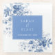 French Blue Toile Floral Wedding Glass Coaster