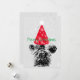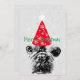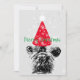 A cute French bulldog, Santa hat and snowflake background Christmas card.