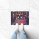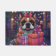 Cute French Bulldog is celebrating Christmas and sitting between her colorful string of lights. She has many beautifully wrapped presents with gorgeous bows decorated among the lights. The adorable little pug plays Santa Claus with a bow on her head and wishes Merry Christmas. The dog is in a Christmas mood on a night with many stars and a full moon. Dreamy illustrations and a beautiful gift for every dog owner.