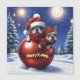 Little French Bulldogs in the snow with a great big Christmas ornament. The cute dogs wish Merry Christmas and have many beautiful gifts decorated with great bows. Funny, romantic illustration with stars and moonlight for the holiday.