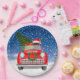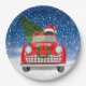 French Bulldog Driving Car In Snow Christmas Paper Plate
