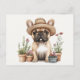 French Bulldog Gardening Flower Pots Postcard