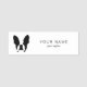 Name Tag template ideal for dog care, dog walking, dog sitting, pet photographer services. The modern design shows french bulldog head and your name.