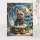An irresistible illustration featuring a sweet fawn French Bulldog snug inside a classic snow globe, wearing a cozy argyle sweater. A unique and charming design for Frenchie lovers this holiday season.