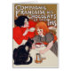 Compagnie Francaise des Chocolat et des Thes, or French Chocolate and Tea Company. This is a beautiful chocolate image of a mother, child, and lovely cat sitting at the table having a chocolate party. This chocolate party is very French, very Art Nouveau. The chocolate poster is in rich browns and reds, just perfect colours for chocolate lovers. The mommy is sipping from her chocolate cup, while the little girl is just starting to take a taste of cocoa from her spoon. The girl is watching her kitty, who is sitting on the table watching the whole chocolate party. About Compagnie Francaise des Chocolat et des Thes - The poster was created by Swiss artist Theophile Alexandre Steinlen in 1898, high time for beautiful Art Nouveau posters in Paris. Steinlen's trademark was cats, but he was also known for his wonderful images of cabarets performers and hundreds of magazine illustrations depicting everyday Parisian life. He lived in the avant-garde Montmartre section of Paris, and he and other artists including Toulouse Lautrec developed the Art Nouveau style.