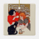 Compagnie Francaise des Chocolat et des Thes, or French Chocolate and Tea Company. This is a beautiful chocolate image of a mother, child, and lovely cat sitting at the table having a chocolate party. This chocolate party is very French, very Art Nouveau. The chocolate poster is in rich browns and reds, just perfect colours for chocolate lovers. The mommy is sipping from her chocolate cup, while the little girl is just starting to take a taste of cocoa from her spoon. The girl is watching her kitty, who is sitting on the table watching the whole chocolate party. About Compagnie Francaise des Chocolat et des Thes - The poster was created by Swiss artist Theophile Alexandre Steinlen in 1898, high time for beautiful Art Nouveau posters in Paris. Steinlen's trademark was cats, but he was also known for his wonderful images of cabarets performers and hundreds of magazine illustrations depicting everyday Parisian life. He lived in the avant-garde Montmartre section of Paris, and he and other artists including Toulouse Lautrec developed the Art Nouveau style.