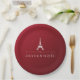 French Christmas Joyeux Noel Eiffel Tower on Red Paper Plate
