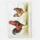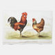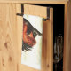 A kitchen towel featuring a vintage painting of a rooster and hen.