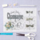 Beautiful vintage dragonflies, vintage French handwriting, great typography of a French Champagne advertisement and a little blue and yellow floral nosegay of vintage pansies and forget-me-nots make a lovely elegant French and nature themed tissue paper for gift wrapping or carfts and decoupage.