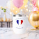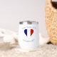 Design on personalized thermal wine tumbler shows a funky shaped heart filled with the flag of France. Above is a spot for a name to personalize. Below, add an occasion (for example Bastille Day, birthday, reunion, etc.) and the year. Or, just add your own text. The French flag is blue, white, and red in three vertical stripes. Great to take to family reunions, clubs, and travel groups. Moms and Dads with French heritage will appreciate it for a Mother's Day or Father's Day gift.