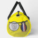 Ms. Penguin appears in her French Flag vest on this personalized duffle bag. Great for travelling. You can personalize it by placing words in the talking penguin's talk bubble. Image shows on sides of bag for uniqueness. You can also customize the background colour. Great gift for a traveller.