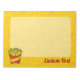 Cartoon illustration of small pack of french fries. Junk food outline icons yellow pattern background. Custom text.