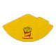 Cartoon illustration of small pack of french fries. Junk food outline icons yellow pattern background. Custom text.