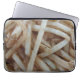 The sleeve is made of nice feeling material and seems very durable. I'm not sure how easy it'll be to clean, but the construction seems sound and the fabric is quick thick. I also like the double zipper. The printing is lovely and appears durable. The white on black contrast is nice, and the design very elegant.