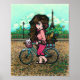 French Girl & Cute Puppy Paris Eiffel Tower Poster