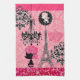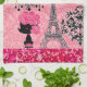 French Girly Eiffel Tower, Puppy & Damask Elegant Kitchen Towel