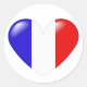 Sticker with an illustration of a heart shape with the colours of the French flag, with a 3D look and reflection highlights.