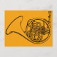 A modern line drawing of a French Horn brass band musical instrument, For musicians or music students or lovers of classical music.