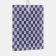 A checkerboard pattern with alternating lavender and black squares fills the image. The repeating geometric design gives a balanced and rhythmic appearance.