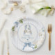 French Nursery Baby Shower Blue Stripes Bow Paper Plate