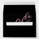 Complete your bridal shower suite with this trés chic envelope, designed to perfectly complement our “Oh La La” Parisian bridal shower invitation. Featuring a bold black backdrop, delicate pink florals, and a whimsical Eiffel Tower accent, this envelope sets a romantic, fashion-forward tone from the very first glance.