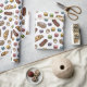 An assortment of tasty French pastries scatters across this scrumptious looking dessert themed wrapping paper. Macarons in pastel pink, purple, blue, green and yellow dance among sugared madeleines (little butter cakes), mille-feuilles (custard slices), chocolate eclairs and puffy croissants. So sweet it looks edible! The background color can be changed. Perfect for aspiring bakers and all who answer the call of their sweet tooth!