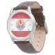 I was uncertain about the size being too small but it looks good. The case looks like aluminum (not shiny) and the time is easy to see. I changed the band because the leather doesn't go with my lifestyle.a. Exactly what I expected, nice yellow. It grabs peoples attention.