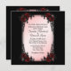 Amazingly beautiful and unique gothic / Victorian design wedding invitation. An iron scrolled rose ensconced frame complete with black candelabra. This is just one of the colours available for a pink or rose colour scheme Goth wedding. Add the name of bride and groom on back along with the date.
