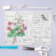 Vintage handwritten script from an old French postcard is combined with French Redoute purple pink primrose illustrations and a hand-drawn bird for this one of a kind tissue paper.