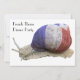 A photo of an edible snail with a French flag coloured shell on this frivolous dinner party invitation. All the text can be customized, including the disclaimer that snails aren't on the menu, which can be removed if they are! Matching apron available for the chef or chefette, and t-shirts for the guests!