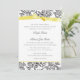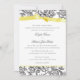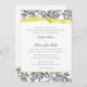 Elegant black french toile inspired floral design invitation in black with a pretty yellow printed bow wedding invitation. Entire invitation is a printed design, The ribbon bow is not real.