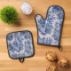 French toile de jouy blue and white elegant oven mitt & pot holder set
