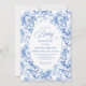 French Toile de Jouy Blue Roses Baby Shower Invite
