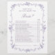 Elegant lavender floral bridal shower 'How well do you know the bride?' game with custom text on the back. For more advanced customization of this design, please click the DESIGN TOOL BUTTON above!