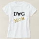 A fun graphic tee for Dog Moms who love french bulldogs. The white text DOG with a photo of a Frenchie replacing the O and MOM below in a shimmering gold font.