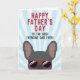 Frenchies, this french bulldog Father's day card will make your Dad's day. The design features an illustration of a cool looking blue coloured french bulldog wearing red sunglasses with the wording "Happy Father's Day to the best Frenchie Dad ever!" written on the front. The inside of the card reads "To Dad, I love you more than treats" but can be changed to the wording of your choice.