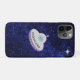 Alien and flying saucer on our navy blue Milky Way Galaxy iPhone Case. Text can be personalized. Star can be customized.