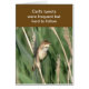 Card with photo of reed warbler and words 'Carl's tweets were frequent but hard to follow' from New Forest Pics