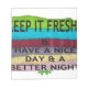 Revitalize your space with our “Fresh and Clean: A Burst of Colour for a Fresh Start” design. This vibrant artwork features an arrangement of colourful folded towels, symbolizing cleanliness and freshness. The cheerful text, “Keep it Fresh. Have a nice day and a better night,” adds an uplifting touch, making it a perfect addition for your bathroom, laundry room, or spa.