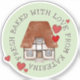 A charming, old-fashioned English Tudor home on a 1930's green sticker evokes memories of fresh baked goods. Little red hearts adds a sentimental touch. This vinyl label is great for popping on a white bakery box, clear cellophane wrapping, or jars or tins filled with the recipient's favourite treats. Customize with your name (or business) and watch as the receiver's eyes light up in delight at your thoughtfulness -- and baking skills!