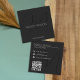 These fresh black minimal square business cards are customizable and your business info is easy to add. With the QR code on the back + all of your contact info it is a full business card to hand out.