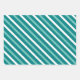 A fresh and fun trio of wrapping paper sheets in various shades of blue and teal with white stripes and polka dots. This stylish combination is perfect for wrapping birthday and/or holiday gifts for your friends and family. The blue and teal colours work for young and old alike.