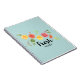A spiral notebook with a cute design featuring tumbling citrus fruits - lemons, limes and grapefruits. Trendy typography says "Fresh" with a cute squiggly underline.