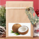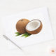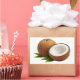 Fresh whole coconut with one half cut open showing clean white flesh and natural texture, placed with green leaves. High-resolution image with sharp focus and realistic colors, perfect for tropical fruit, healthy food, organic ingredients, coconut water, and nutrition concepts. Ideal for packaging design, recipe blogs, advertising, and stock photography backgrounds.