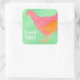 An eye catching colourful square sticker featuring a pink orange chicken on a green watercolor wash background painted with watercolor. You can customize the text to fit your needs.